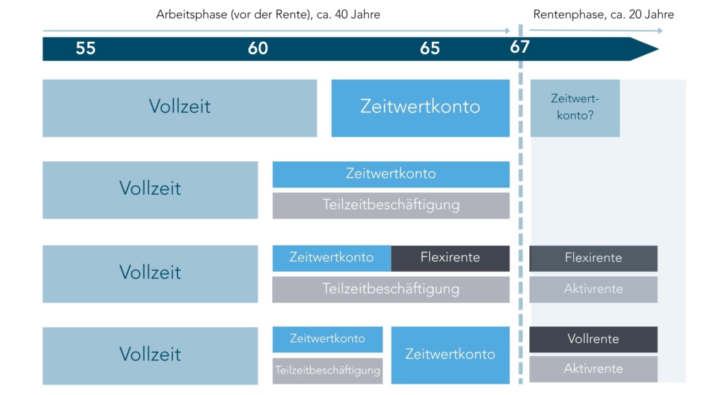 Ein zentrales Instrument moderner Übergangsstrategien ist das Zeitwertkonto (gemäß § 7b SGB IV).