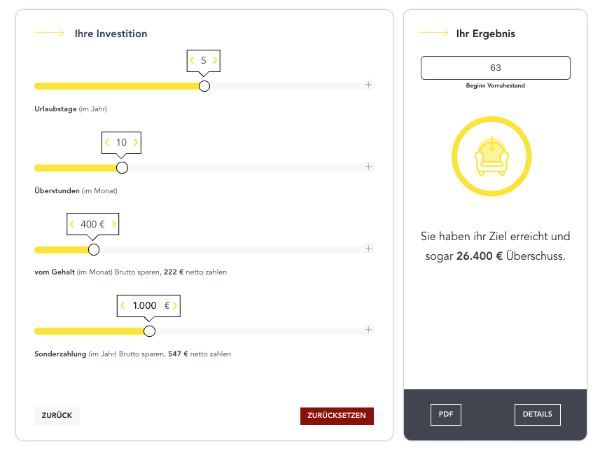 Testen Sie den Zeitwertkonto-Rechner und gewinnen Sie Klarheit über Ihren individuellen Gestaltungsspielraum.